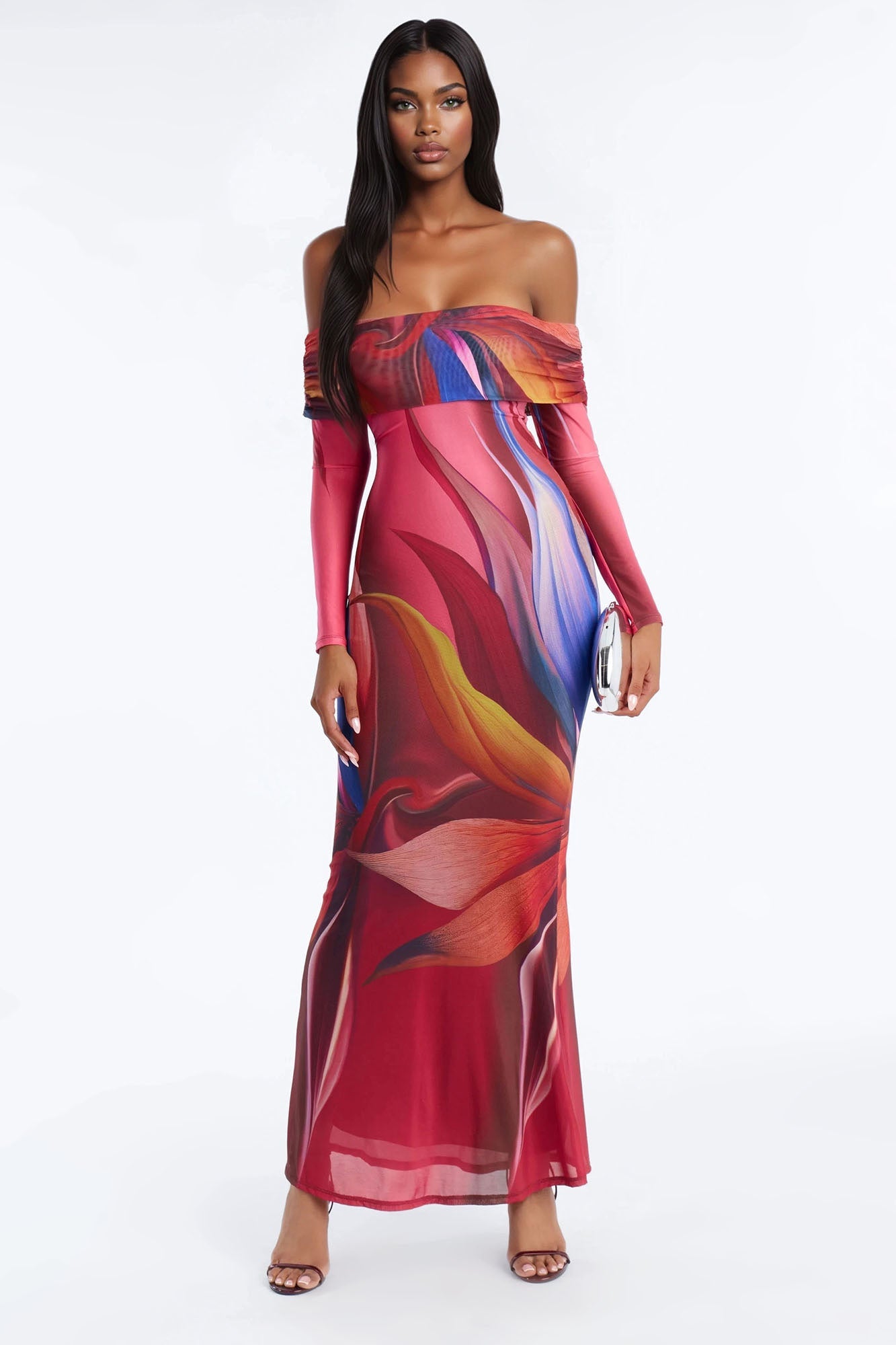 Jennifer Abstract Mesh Maxi Dress - Pink/combo