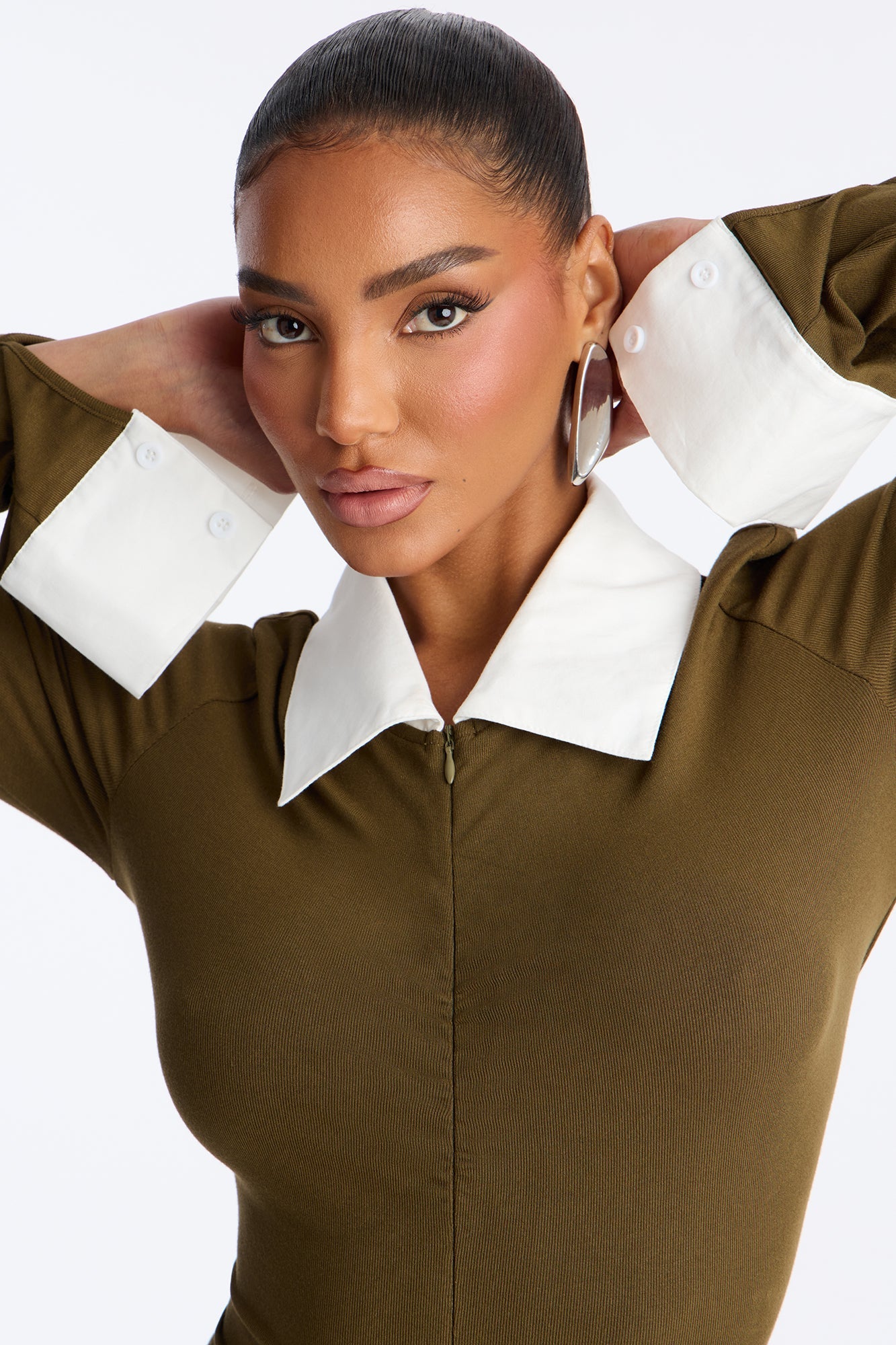 Ultimatum Collared Long Sleeve Bodysuit - Olive/combo